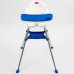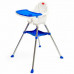 Стільчик для годування обладнаний ременями безпеки та пластиковою перегородкою для дитячих ніжок, що забезпечує безпеку дитини. Ніжки стільця металеві та прогумовані, решта – пластик. Стільниця знімна, з отвором під склянку. Розмір у зібраному вигляді – 97 х 67 х 68 см. Для дітей від 6 місяців до 3-х років. Запакований у дві коробки. _