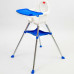 Стільчик для годування обладнаний ременями безпеки та пластиковою перегородкою для дитячих ніжок, що забезпечує безпеку дитини. Ніжки стільця металеві та прогумовані, решта – пластик. Стільниця знімна, з отвором під скл...